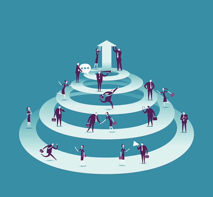 知識とは、ある特定の状況や文脈において他者や環境との相互作用を通じて創造され、実践される正当化された信念である。したがって、知識の創造と実践は社会的な営みだと言える。前著『知識創造企業』で提示したSECIモデルのプロセスは、次の4つにまとめることができる。第一に、個人同士が直接的な相互作用により暗黙知を共有する「共同化」。第二に、個人がチームレベルで共同化によって積み重ねられた暗黙知を統合し、形式知に変換する「表出化」。第三に、形式知が組織の内外から集められ、組み合わされ、整理されることで体系的な形式知が組織レベルで築かれる「連結化」。そして第四に、連結化によって増幅した形式知が実行に移され個人の血肉となる「内面化」である。知識は個人や組織間で相互作用しながらSECIプロセスをたどることにより、増幅していく。これがSECIスパイラルである。SECIプロセスが繰り返され、スパイラルとなることにより、知識は個人レベルから組織レベルへ、組織レベルから組織間レベルへ、そして社会レベルへと、徐々に高次の方向に上昇していく。この次元が上昇するに伴い、かかわるコミュニティが大きくなり、より多くの人がかかわるようになる。それにより知識実践の規模と質が高まり、より多くのイノベーションの促進につながる行動が引き出される。この運動により、知識創造・実践のコミュニティは大きくなっていく。このスパイラルの上昇の原動力となるのは、組織の「高次の目的」である。これには、後述するように、組織の利益だけを追い求めない「共通善」の追求が必要だ。SECIスパイラルは、組織が単に環境の変化に対応するというだけでなく、自分たちが思い描く未来を実現するという目的のもと、自己刷新をくり返すプロセスである。