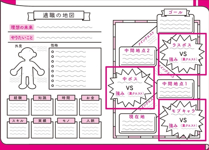 7日目:強み・敵・裏クエスト(足りない強み)を書き入れ、「適職の地図」を完成させる