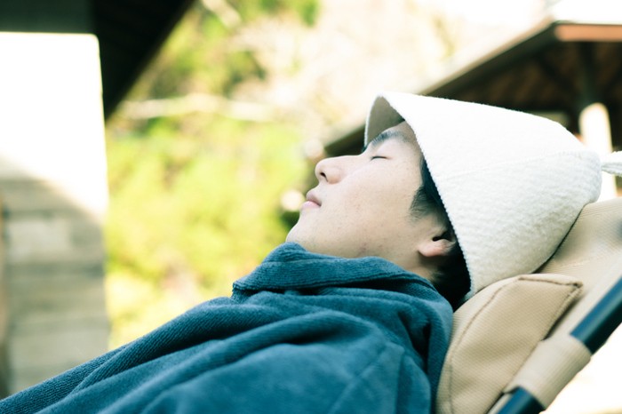 最後の休憩は、「『ととのう』感覚を得るために欠かせないステップ」である。目安は5分から10分。身体が冷えすぎないよう注意しながら、椅子やベンチにゆったりと腰を下ろし、目を閉じて深い呼吸をしよう。